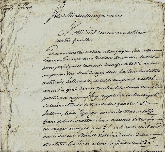1665-1704 Mémoire des titres de la famille TOUACHE de Marseille et Allauch